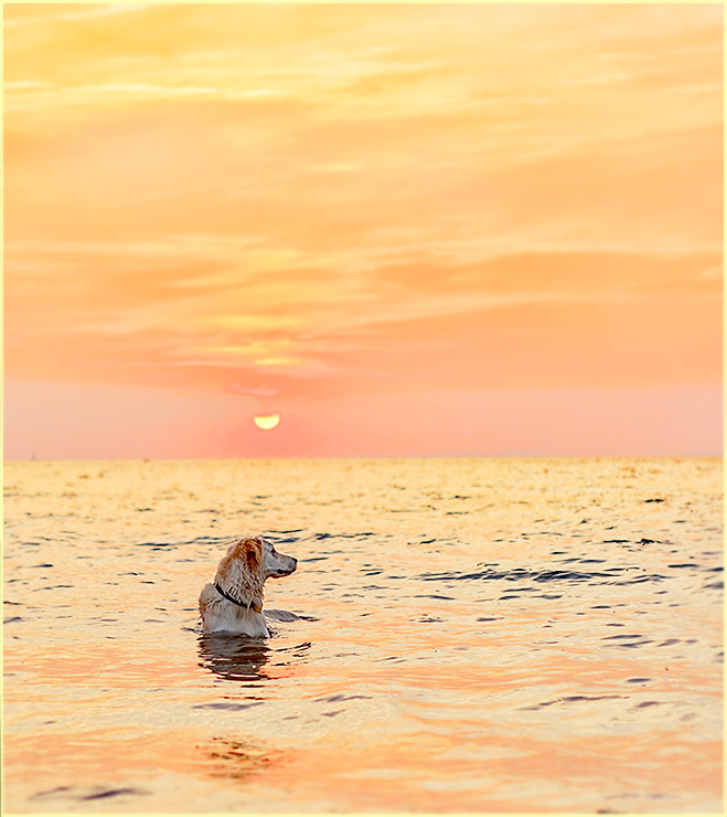 Hund   Wasser   See   Bodensee   Sonnenuntergang   Wellen   Fell   Himmel   Wolken     Details anzeigen